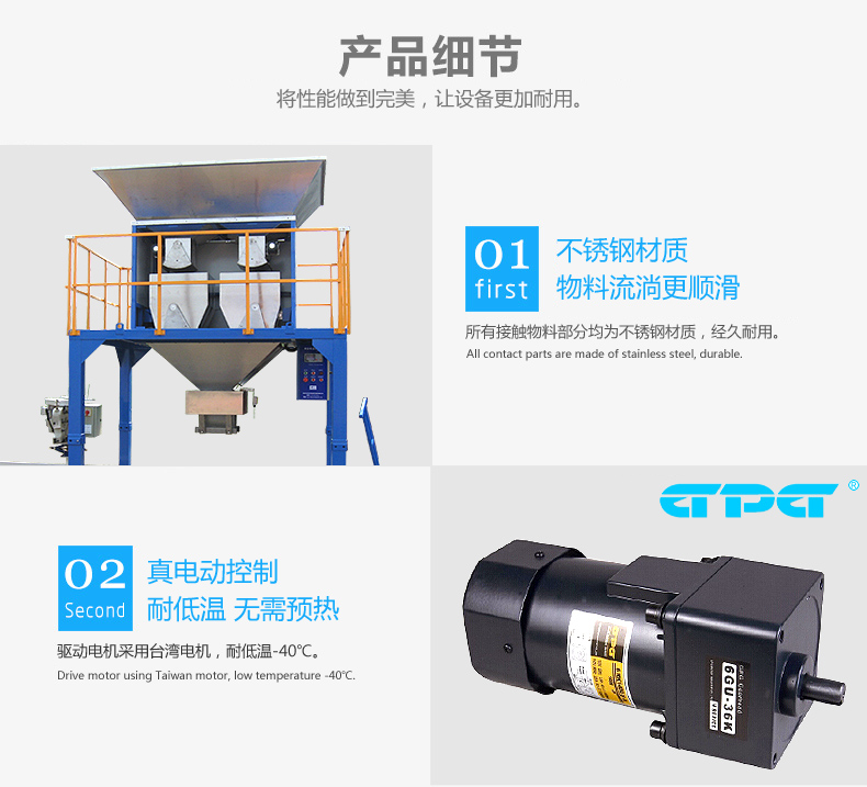 五、可靠性高,東昌定量秤,為了增加產品的耐用性,所有電機均加配備過載保護系統(tǒng),驅動電機的繼電器均采用無節(jié)點的固態(tài)繼電器,不僅延長了設備的使用年限,也更加提高了設備的穩(wěn)定性。